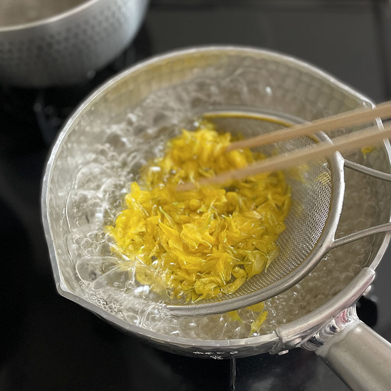 ▪︎ 米のとぎ汁を満水近くまで入れて、弱火で20~30分ほど火にかけてください。