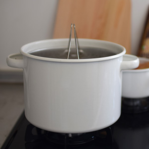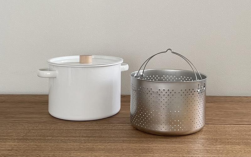 琺瑯は鉄にガラス質の釉薬を焼き付けています。そのため耐食性・耐酸性・保温性に優れ、臭い移りもなく洗いやすい素材です。そんな優れた素材の琺瑯の器物をつくるメーカーは、今では国内でたった3社しか残っておらず、絶滅危惧種と言っていいほど貴重な存在です。ガラス質の琺瑯は汚れやニオイがつきにくいので、色移りが心配なカレーやトマトスープを作るのに重宝します。また酸やアルカリにも強いので、ジャムやコンポート作りにも最適です。その他にも熱の伝わりが柔らく保温性が高い点や、汚れが落ちやすく衛生的など、使い手が嬉しい機能性がたくさん備わっています。