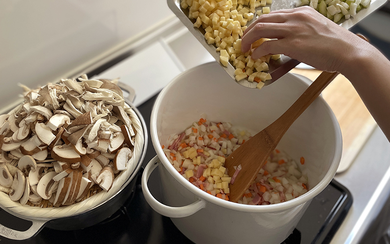 ▪︎ 焦げ付いた場合は、鍋が冷めてから温かいお湯を入れ、付着物が柔らかくなってからお手入れしてください。